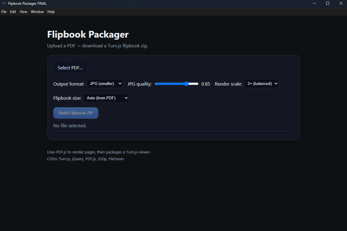 - Open Flipbook Packager (desktop app).